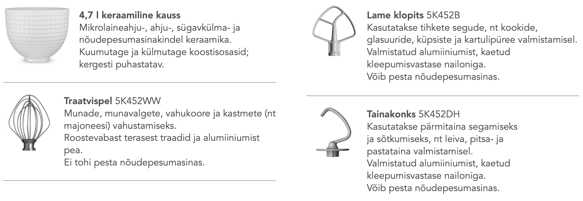 Saadaval lai valik lisavarustusse kuuluvaid tarvikuid.